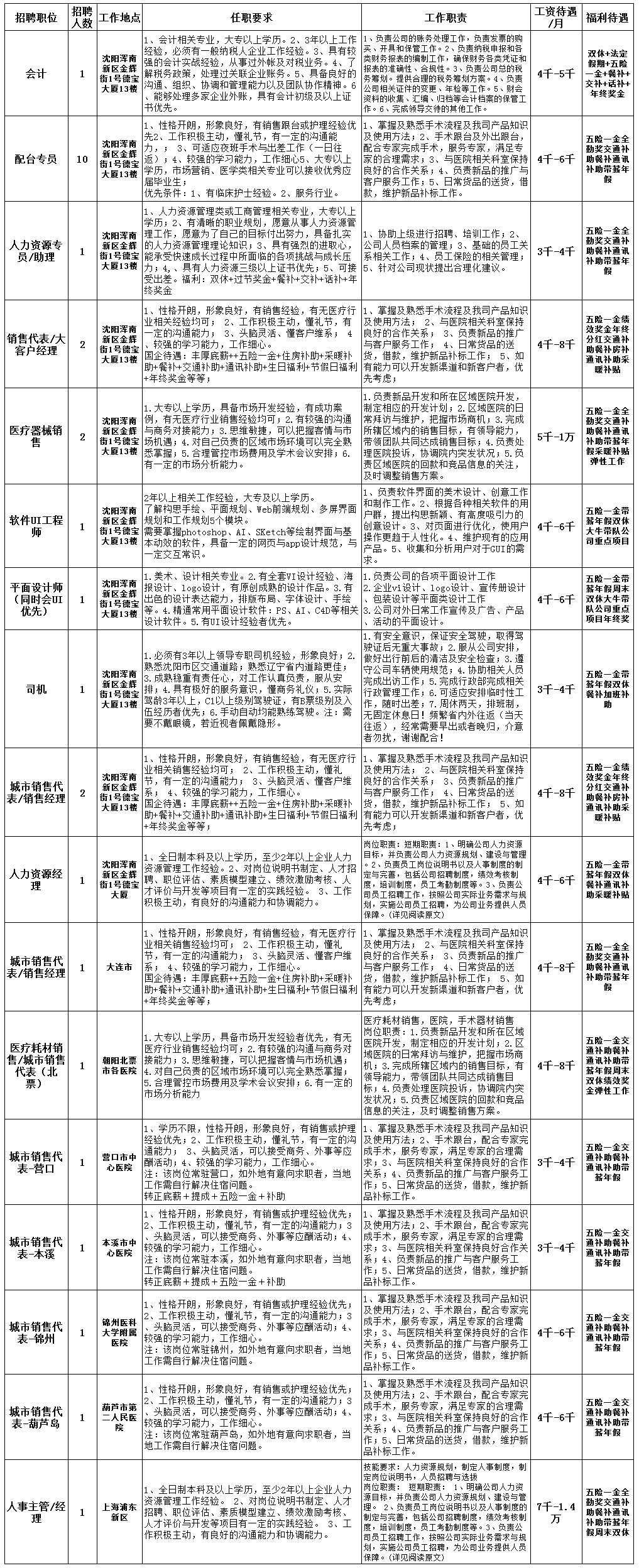 招聘职位如下: