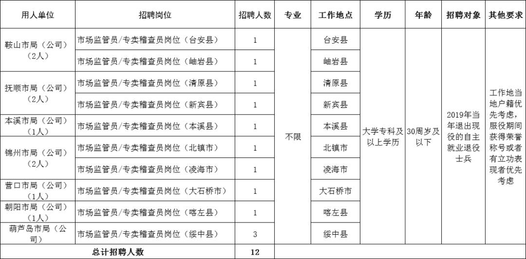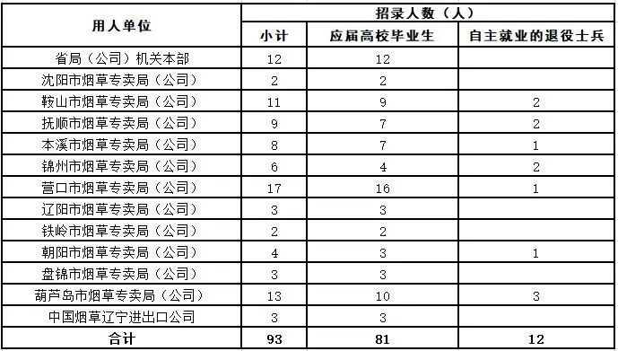 2020年中国烟草总公司辽宁省公司公开招聘计划与岗位表(退役士兵)