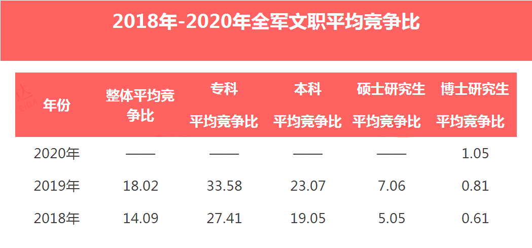 已经上线2020全军文职报名数据查询,帮助大家及时了解报考人数,目前已经完成报名的博士岗位报考数据已经更新。