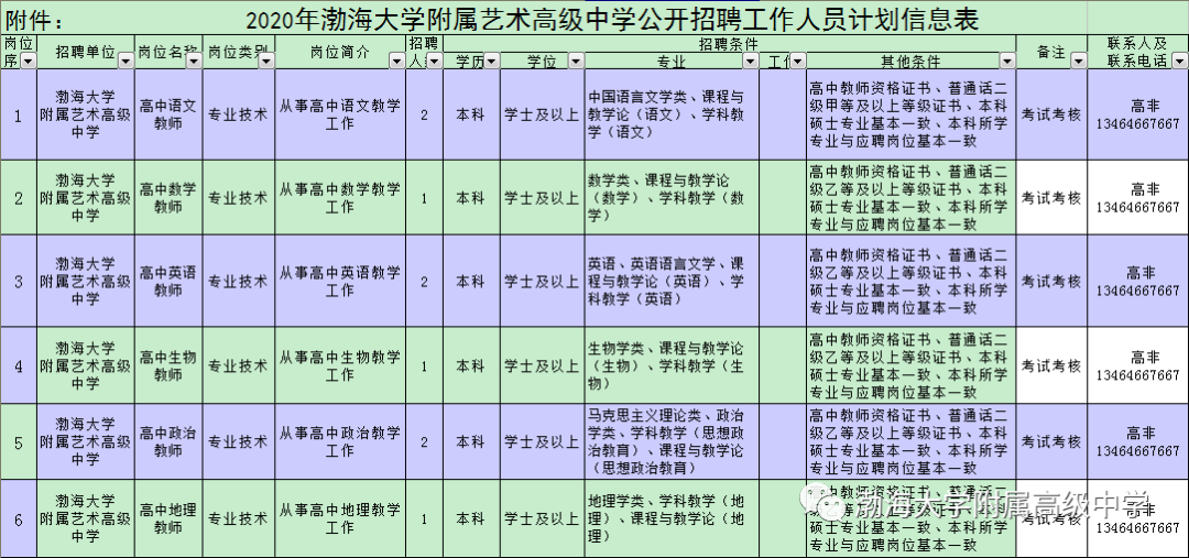 附件:2020年渤海大学附属艺术高级中学面向社会公开招聘工作人员计划信息表