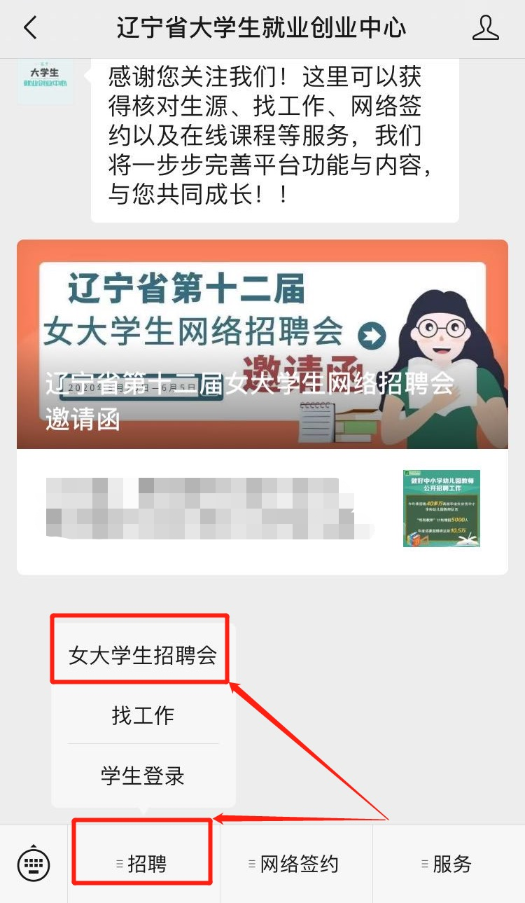 菜单->“招聘会”专栏->选择“女大学生招聘会”